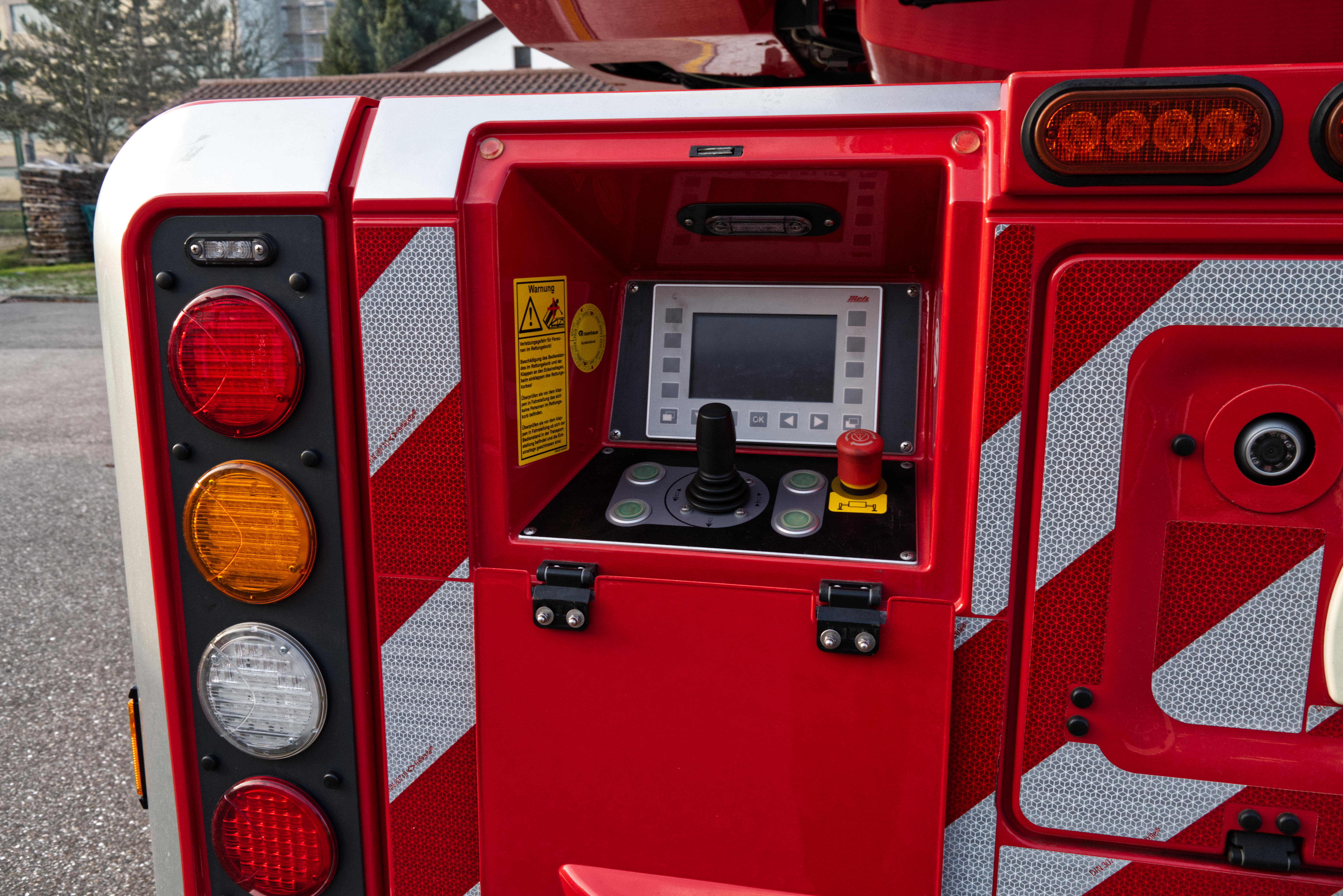 Dieses Fahrzeug ist ein Hubrettungsfahrzeug. Durch Anleitern an Gebäuden kann ein Rettungsweg bzw. Zugangsweg geschaffen werden. Durch den abknickbaren Leiterarm kann die Drehleiter vielfältig eingesetzt werden. Folgende Besonderheiten weist dieses Fahrzeug auf: